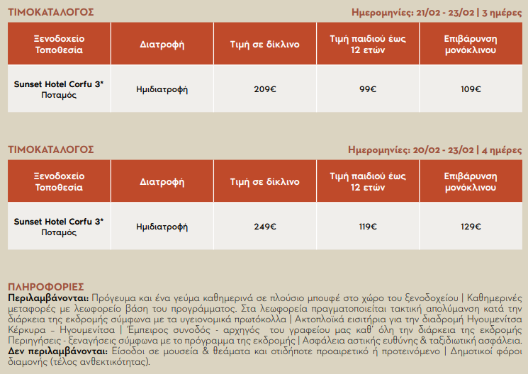 Σημείωση: Στην 3ημερη εκδρομή υπάρχει σύμπτυξη της 2ης & 3ης ημέρας.